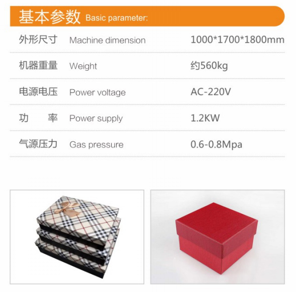 3.整機烤漆,美觀漂亮,方便簡單,易學易懂,是禮品盒生產企業必不可少的專用設備。